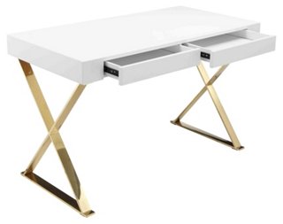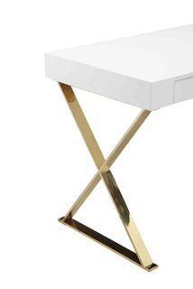 3.9 out of 5 stars 38 ratings. Have seen this style over $600 on other sites so this is a bargain. Bow down to the cosmoliving by cosmopolitan ella l desk. The spacious desktop's crisp white finish matches with the polished gold legs to add instant glamour to your home office. French countryside rubbed white oak dining chair (set of 2.